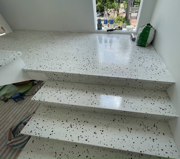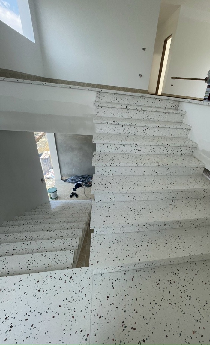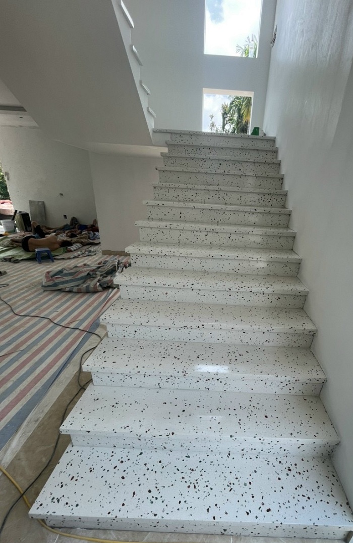 Hình ảnh thi công cầu thang Terrazzo cao cấp chất lượng.